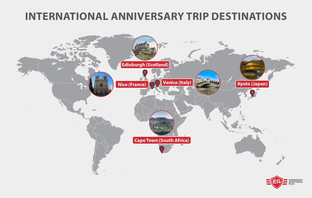 No matter where you’re headed to celebrate your anniversary, Emergency Assistance Plus (EA+) is here to provide you with the protection and support you need while traveling.